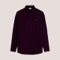 Мужская классическая рубашка Abercrombie & Fitch бордового цвета на пуговицах, вышивка логотипа бренда на левой груди, классический воротник и изогнутый низ.